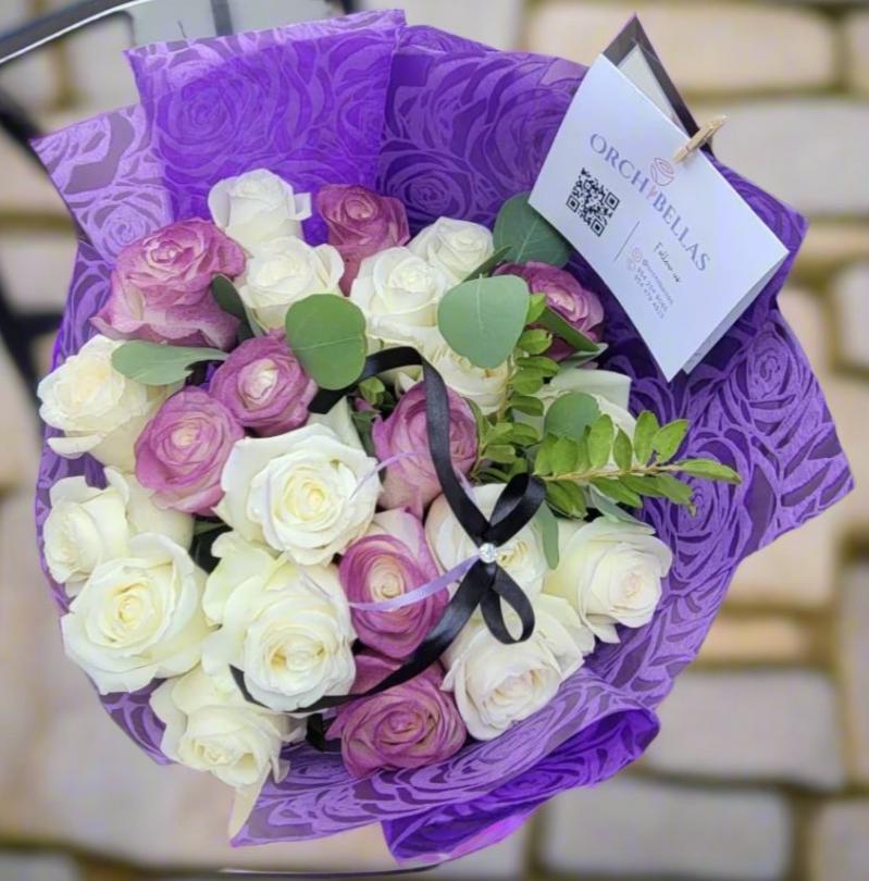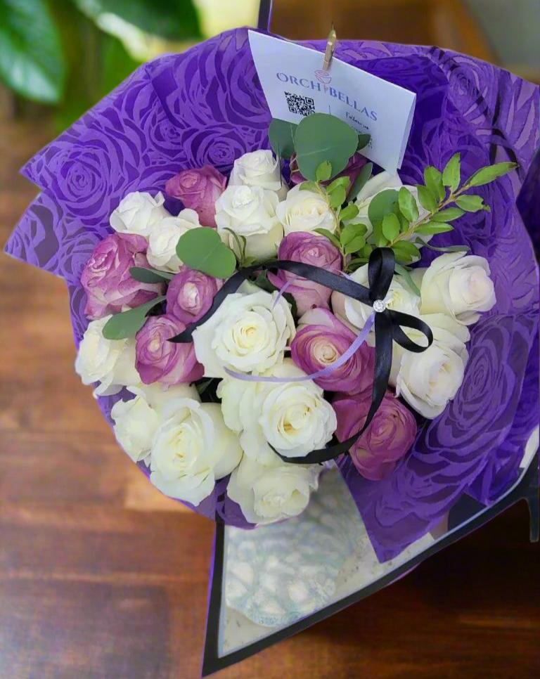 Engulf yourself in the serene regality of our Moonlit Majesty Bouquet. A combination of colors like no other. The white roses, with their delicate petals and subtle fragrance, represent new beginnings and everlasting love. Complementing them, the purple roses add a touch of mystery and majesty, making this bouquet a truly captivating gift.