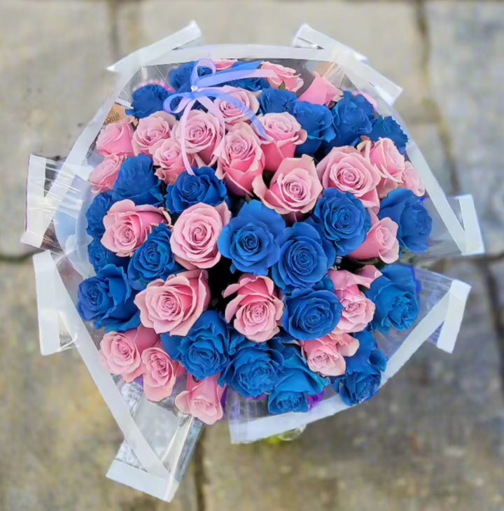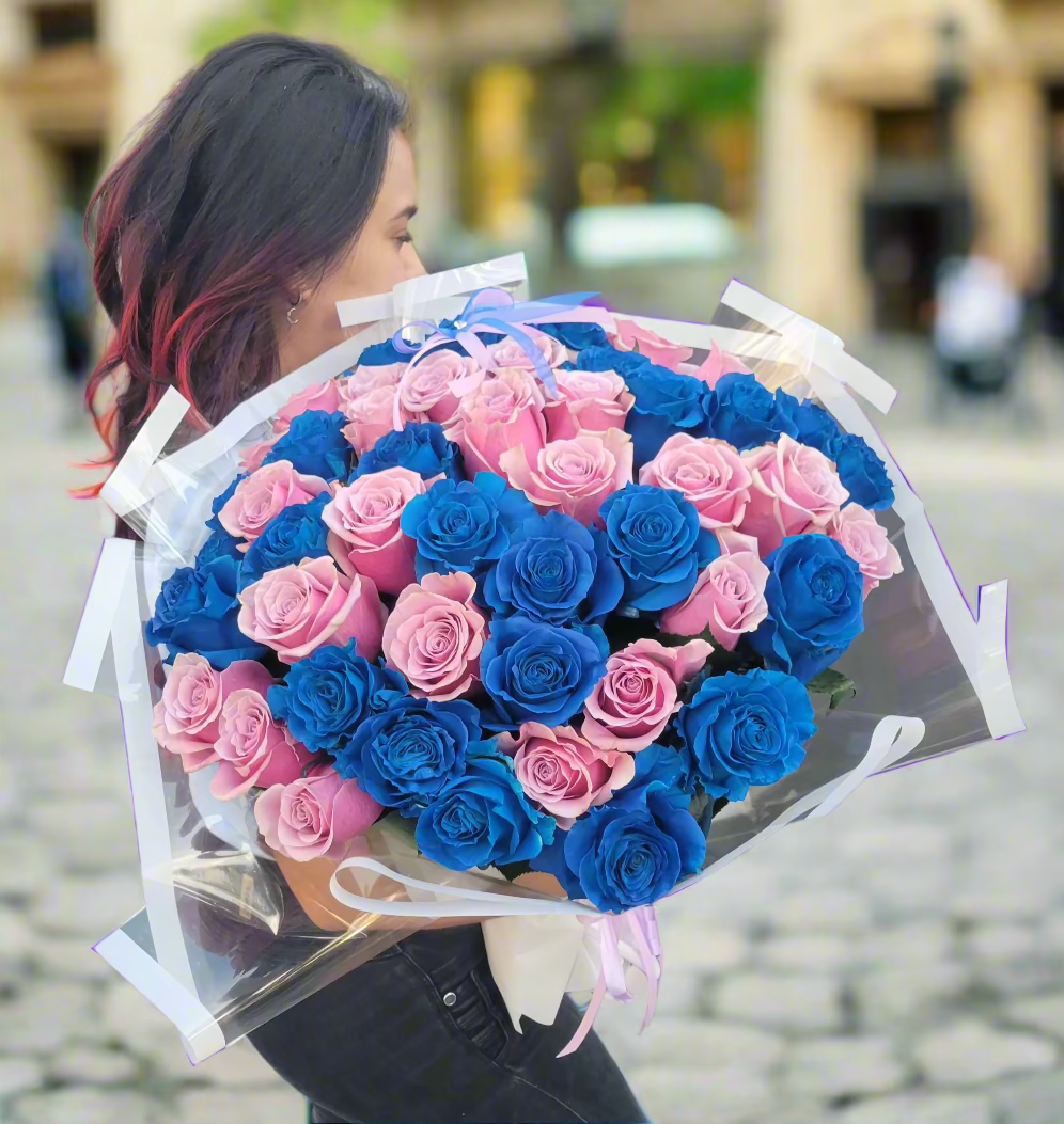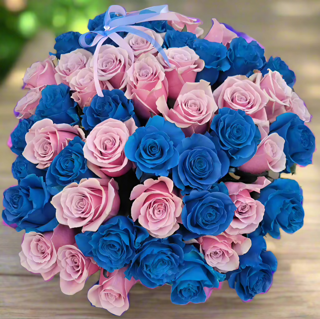 Immerse yourself in the magical allure of our Enchanted Dreams Purple and Blue Rose Bouquet. This stunning arrangement features a mesmerizing blend of rich purple and vibrant blue roses, creating a symphony of colors that evoke a sense of wonder and tranquility.