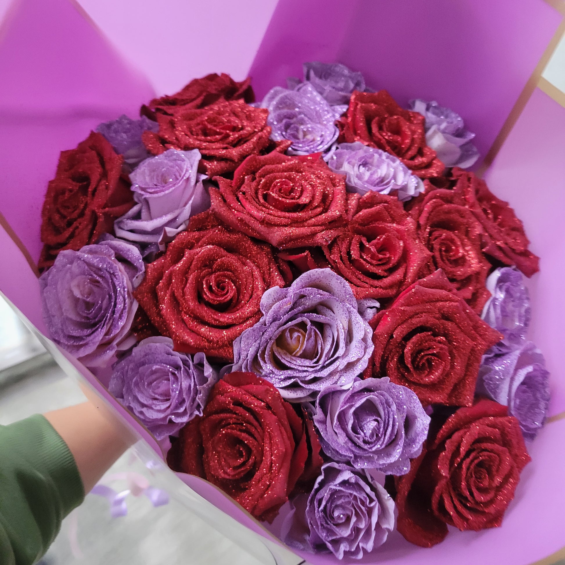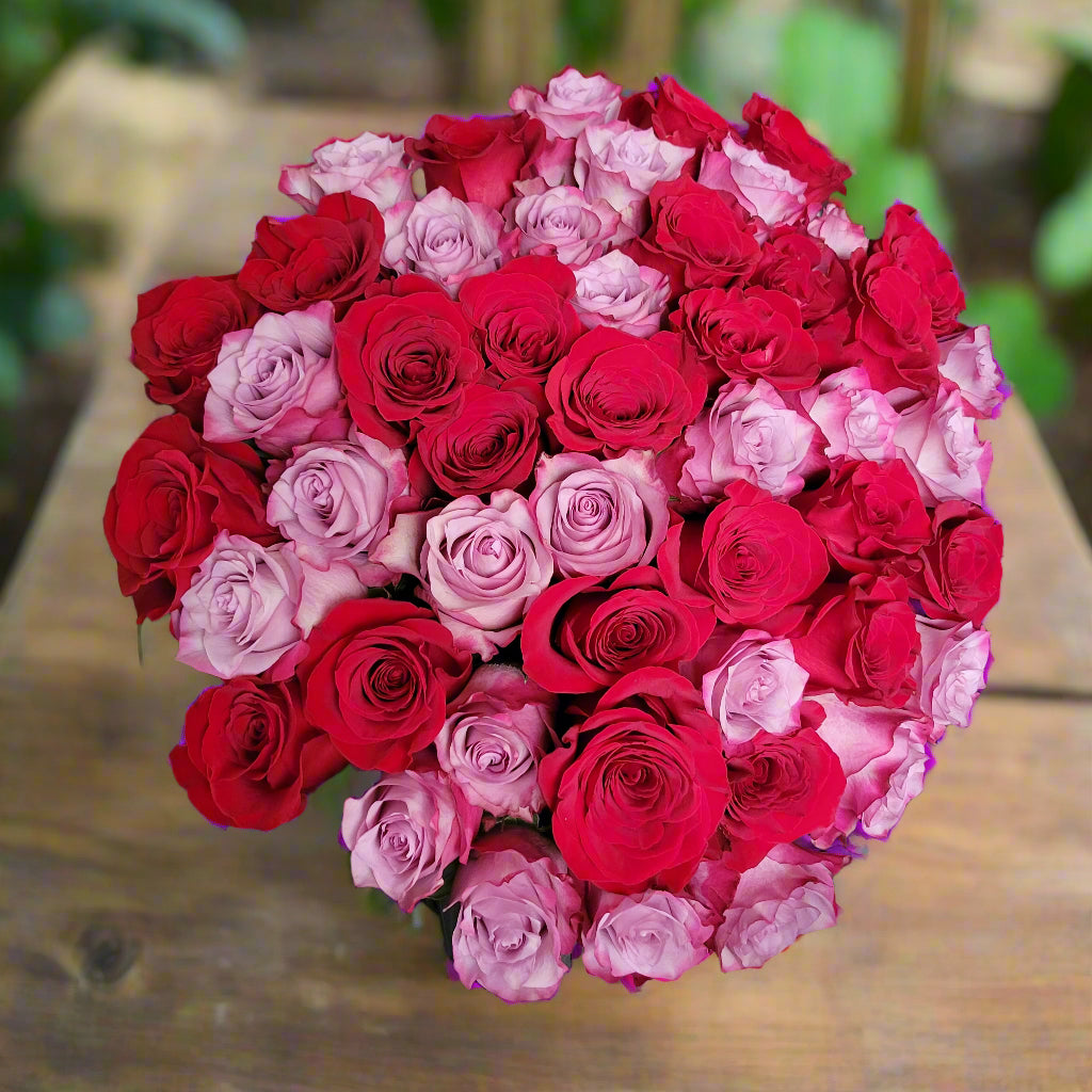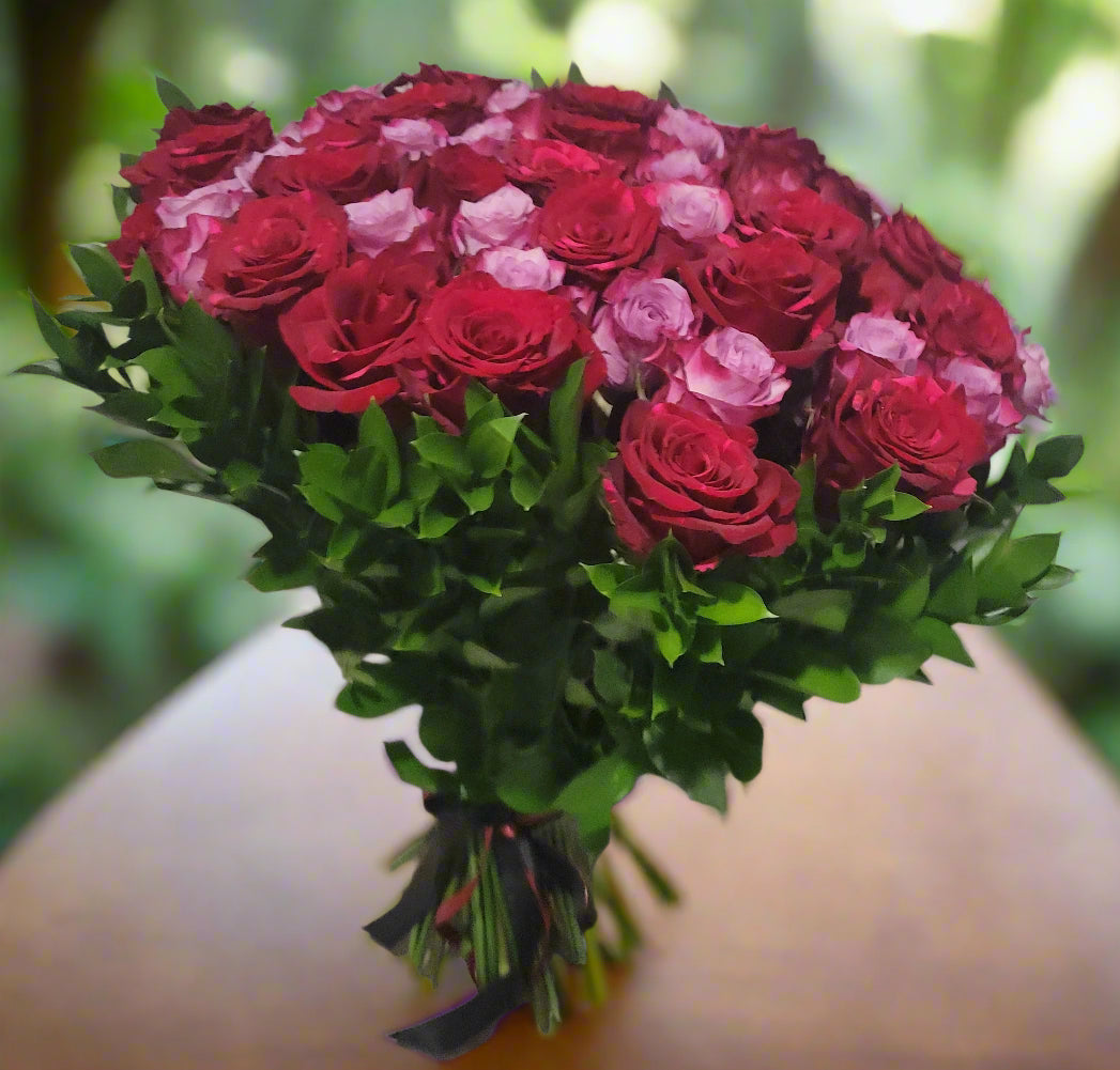 Passion and mystery are vividly expressed with the Red Fire Raindrops Bouquet. Creating a mesmerizing display that captures the essence of romance and intrigue. While red roses are a timeless symbol of love, passion, and respect, purple roses on the other hand symbolize enchantment, mystery, and admiration. The Red Fire Raindrops Bouquet is perfect for making a bold statement and expressing deep emotions.