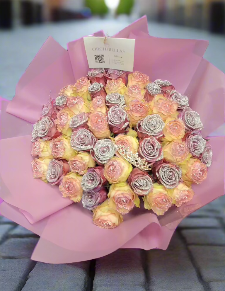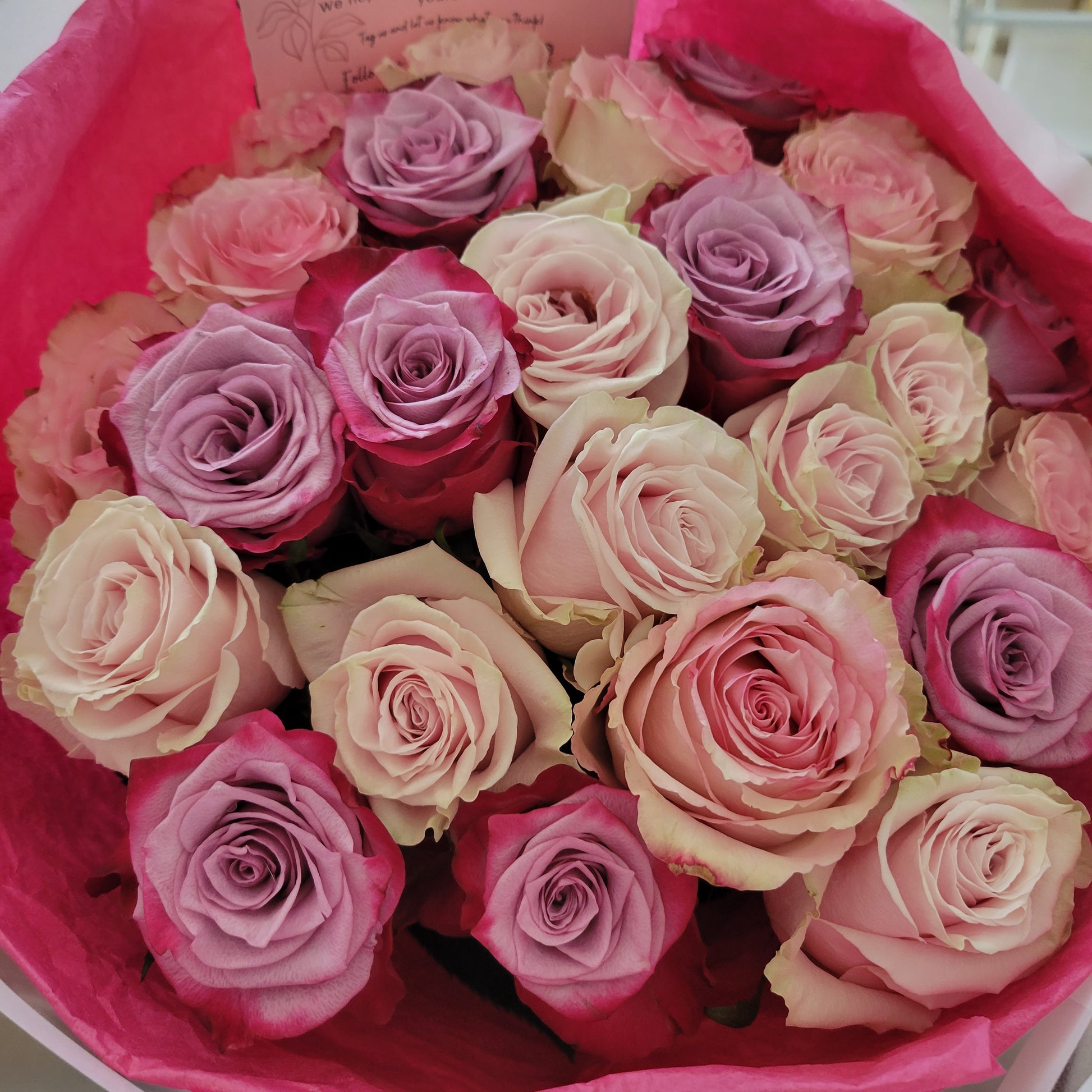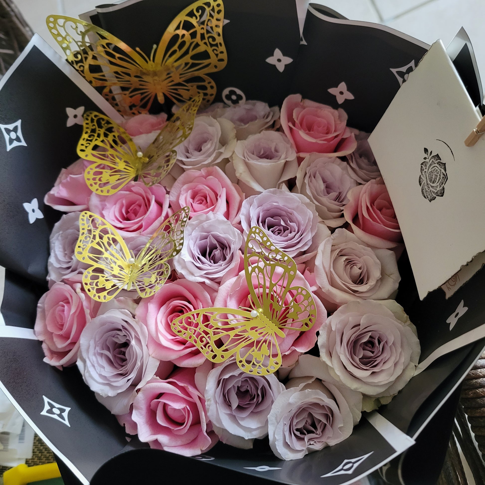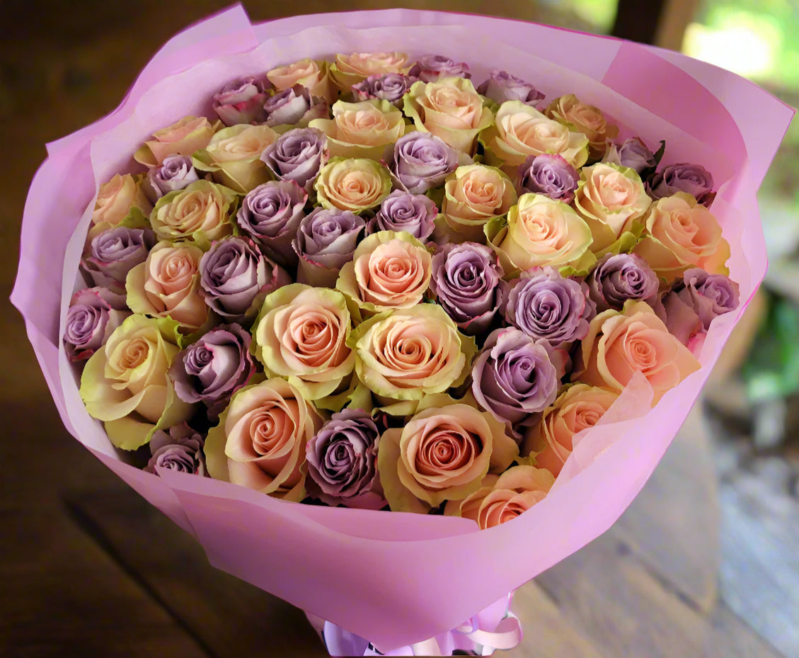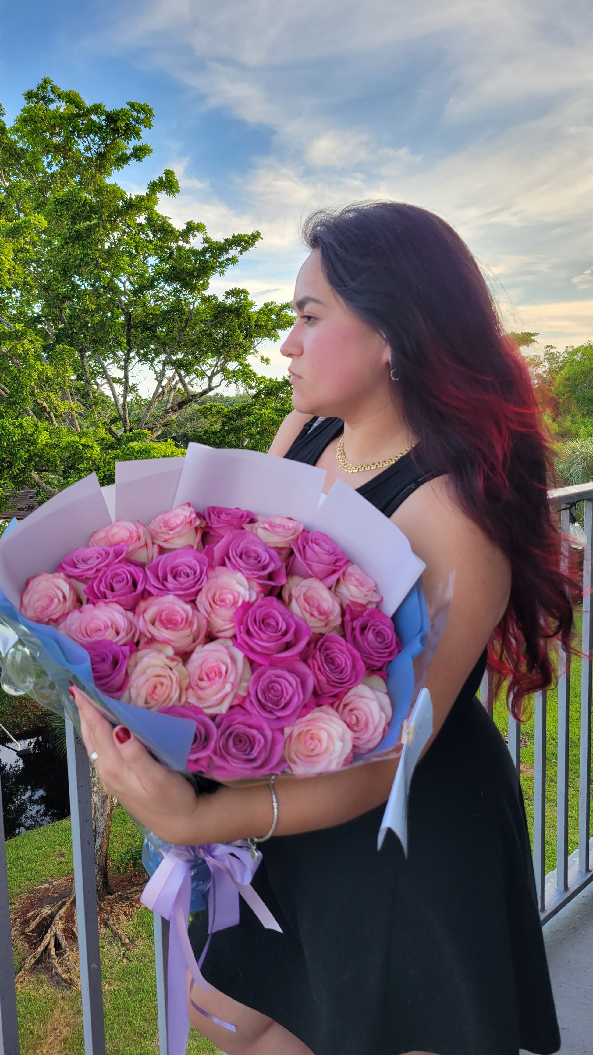 Like GRAAAH! this bouquet expresses the delicate balance between some of a woman's finest qualities. From her grace, to the admiration she receives, the pink roses symbolize why she's all that. Moreover, the purple roses evoke the sense of mystery and deep affection that she yearns for.