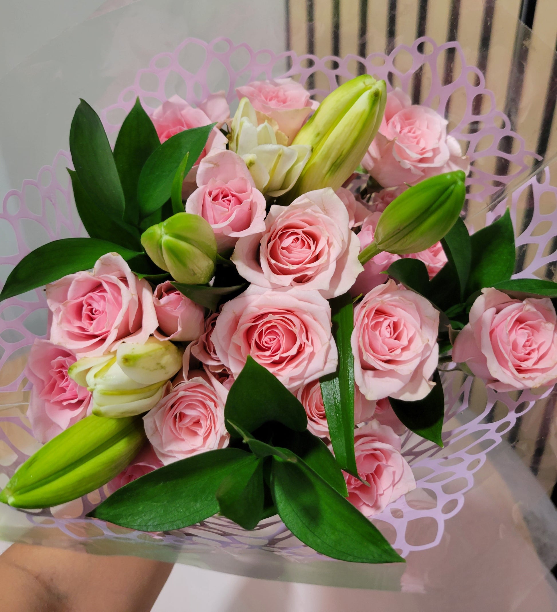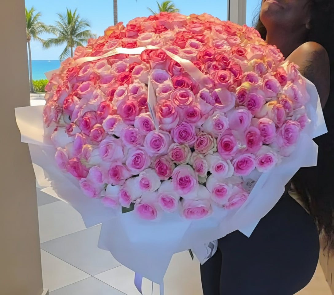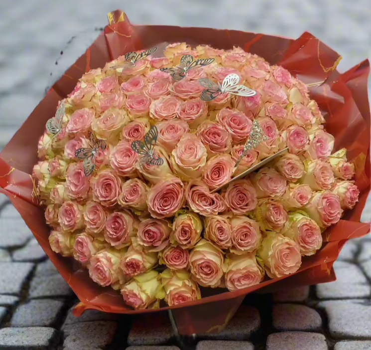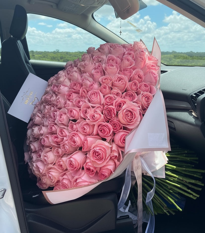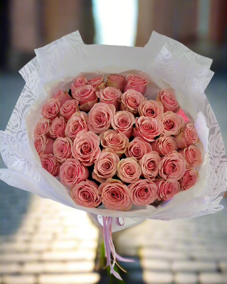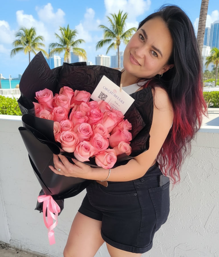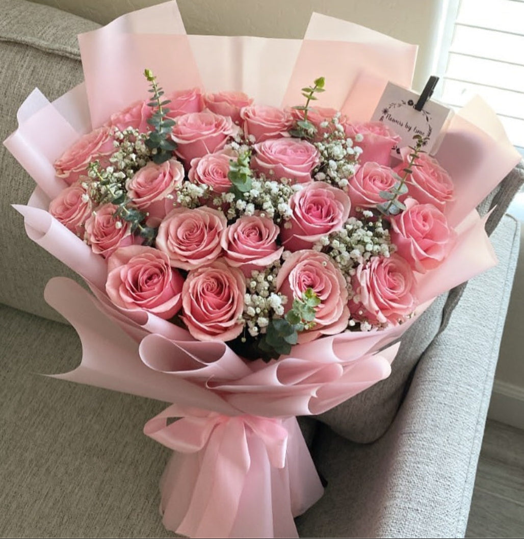 Pink roses symbolize admiration, gratitude, and grace. They are often associated with femininity and elegance, making them an ideal choice to express appreciation, budding romance, or heartfelt sympathy. Whether you’re celebrating a special moment or simply brightening someone’s day, this bouquet conveys your sentiments with sophistication and charm.