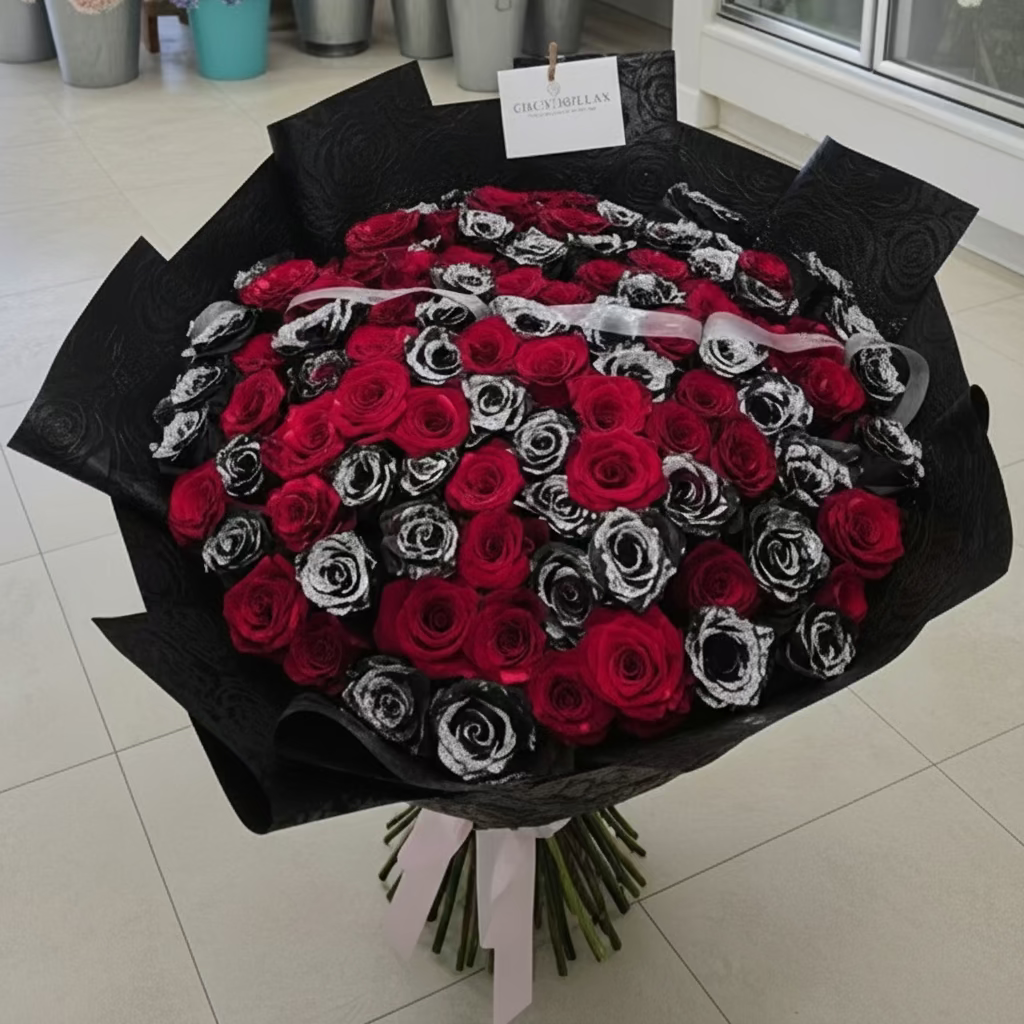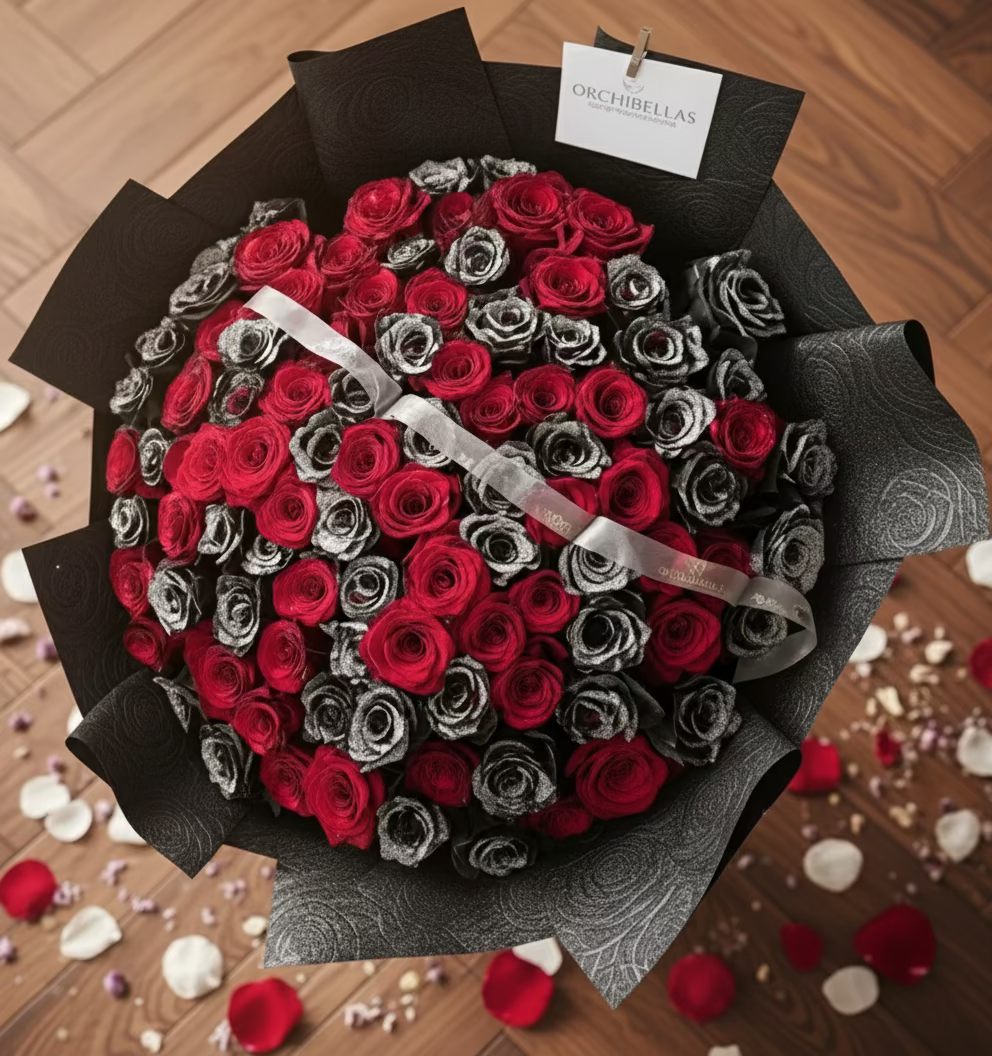 Experience the captivating allure of our Crimson Shadows bouquet. This striking arrangement features a dramatic blend of passionate red and mysterious black roses, creating a powerful visual contrast that symbolizes both love and intrigue. Let the Crimson Shadows bouquet be a reminder of the intensity and depth of your feelings.